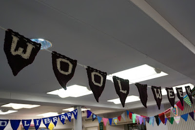 There was also a Maker's Market in Room 16 of Isleburgh Community Centre where my class was taking place. I managed to nip out for a quick look during our lunchbreak. There were knitted items, patterns, yarn and jewellery. You could also purchase tea and coffee, sandwiches and homebakes in the hall and the room was set out with tables with vintage cloths. It had a lovely atmosphere - and it was incredibly busy! Unfortunately my camera's battery was exhausted (a bit like a lot of us!) so I only managed to get two photos of the market.